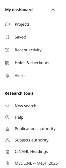 The Dashboard is where you find everything to do with your searching and research. Sign in to MyEBSCO to permanently save your work.