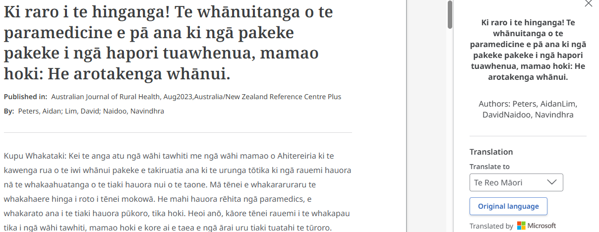 icon in the top right of a PDF or Online Full Text versionWhen viewing Online Full Text you have the ability to translate the full text from English to one of over 110 available languages.