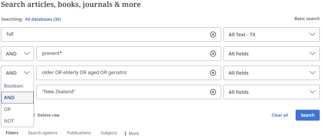 Advanced Search enables you to tailor your search to get the results you want. Think about the keywords you want to use before you start searching. See the Finding Information tab in your subject guide for more information.