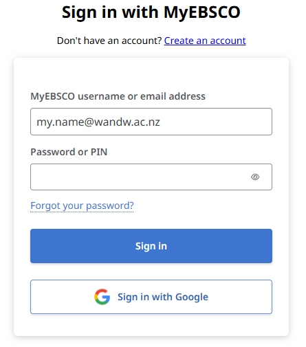 If you forget your password, click MyEBSCO then Forgot your password? to reset