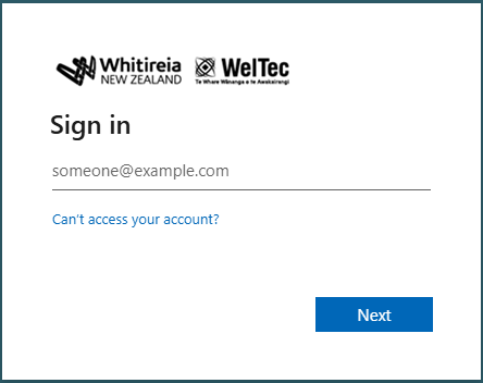 When accessing databases off campus, you will be prompted to sign in using your Whitireia/WelTec email address and network password.
