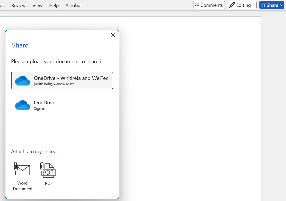 Save your document in OneDrive, if it's not already there