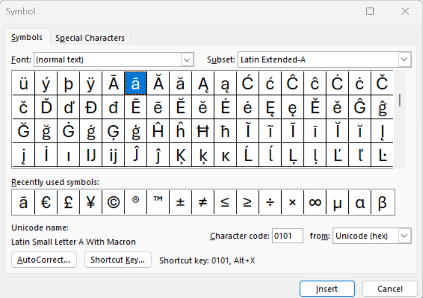 Word shortcut keys